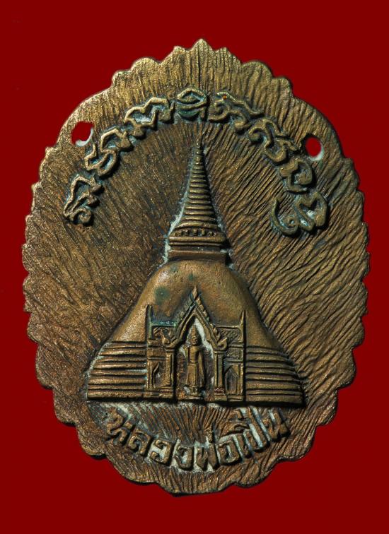 เหรียญหล่อฉลุ หลวงพ่อเปิ่น วัดบางพระ ที่ระลึกสร้าง หอสวดมนต์ หลังพระปฐมเจดีย์ ปี34