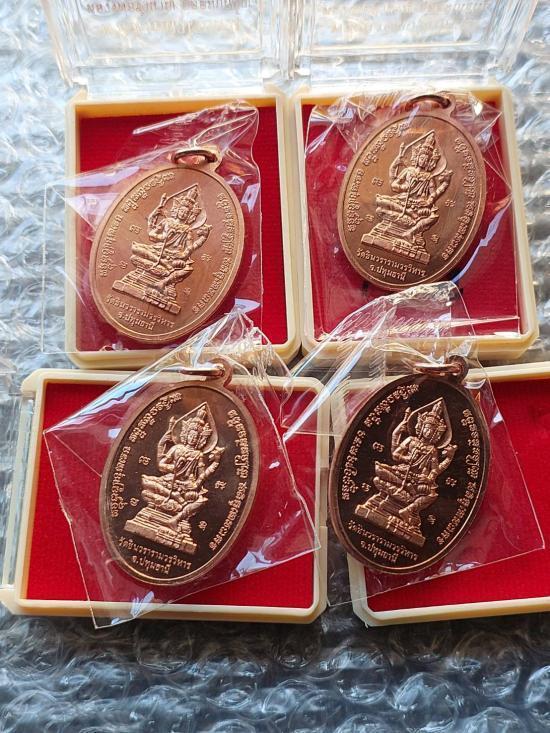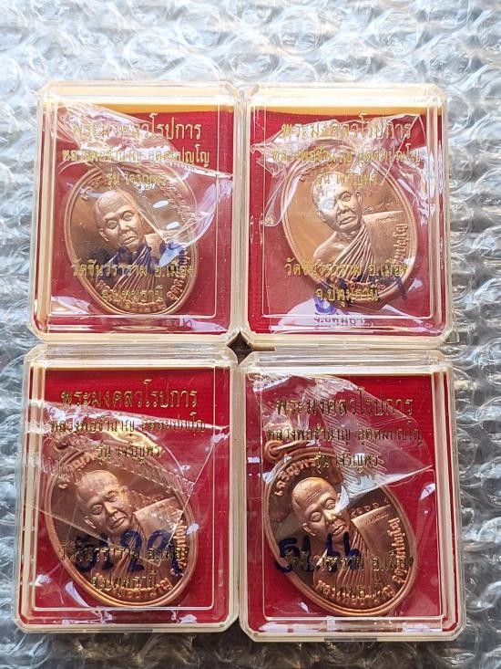 เหรียญเจริญพรบน รูปไข่ รุ่นแรก หลวงพ่อชำนาญ วัดชินวราราม จ.ปทุมธานี พิมพ์เครึ่งองค์ หลังพระพรหม(นิยม) 4 เหรียญ