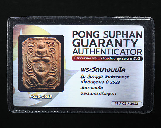 พระวัดบางนมโค พิมพ์ทรงครุฑ เนื้อดินอุดผง รุ่นสู่มาตุภูมิ ปี2533 พร้อมบัตรรับรอง |