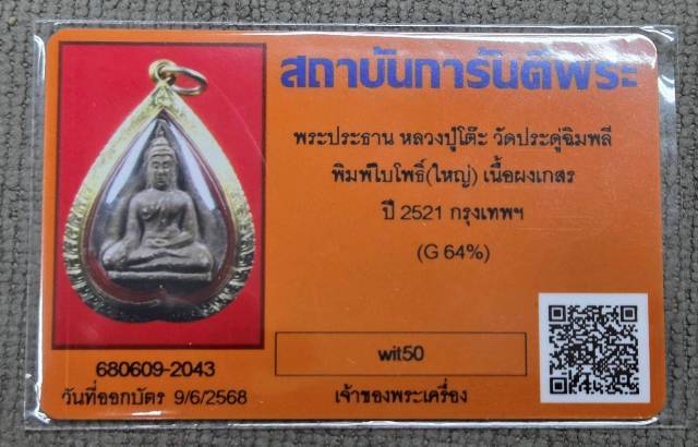 พระผง พิมพ์พระประธาน เนื้อโซน น้ำตาล หลวงปู่โต๊ะ วัดประดู่ฉิมพลี พร้อมบัตรรับรองสวยๆครับ (พระไม่มีกรอบทองแล้วนะครับ)