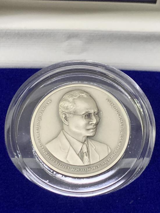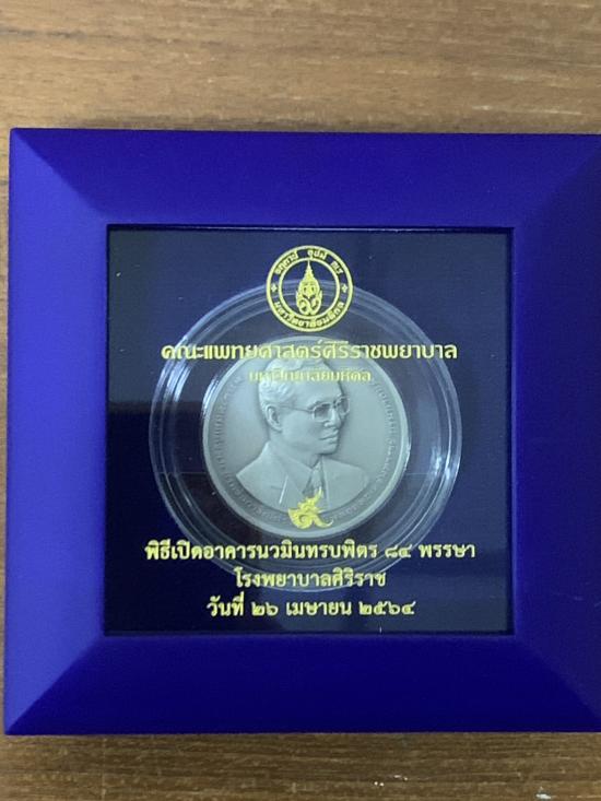 เหรียญที่ระลึกพิธีเปิดอาคารนวมินทรบพิตร 84 พรรษา โรงพยาบาลศิ ริราช เนื้อเงินพ่นทราย ขนาด 3 เซ็น 2564 พร้อมตลับ