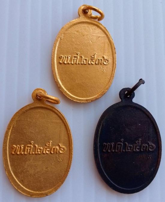 เหรียญหลวงพ่อวัดไร่ขิง ปี 2536 เนื้อกะไหล่ทองลงยาเขียว,เนื้อกะไหล่ทอง และเนื้อทองแดงรมดำ รวมรับจำนวน 3 เหรียญ