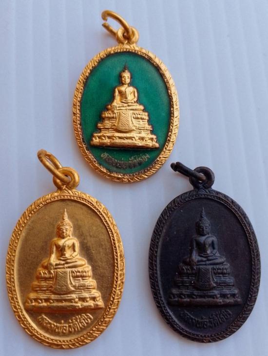 เคาะเดียวแดง.....เหรียญหลวงพ่อวัดไร่ขิง ปี 2536 เนื้อกะไหล่ทองลงยาเขียว,เนื้อกะไหล่ทอง และเนื้อทองแดงรมดำ รวมรับจำนวน 3 เหรียญ