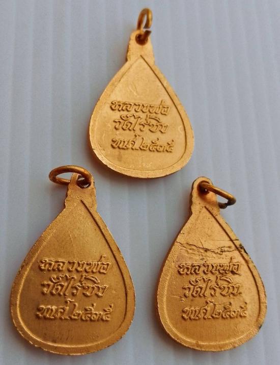 เคาะเดียวแดง.....เหรียญหยดน้ำ หลวงพ่อวัดไร่ขิง ปี 2535 เนื้อกะไหล่ทองลงยา รวมรับจำนวน 3 เหรียญ