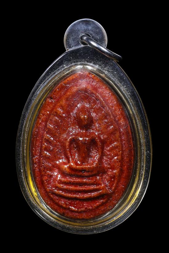 พระพิมพ์ขุนแผนใบพุทรา(กลีบบัว มีกิน) เคลือบสีแดง อาจารย์ลอย โพธิ์เงิน วัดรัตนชัย(จีน)