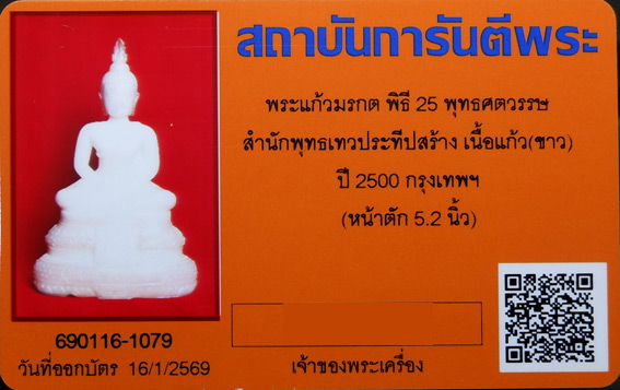 พระแก้วมรกต 25 พุทธศตวรรษ ปี พ.ศ.2500 เนื้อแก้ว(สีขาว) สวยสมบรูณ์ หายาก! พิธีจัดสร้างยิ่งใหญ่พิธี 25 พุทธศตวรรษ. พร้อมบัตร G
