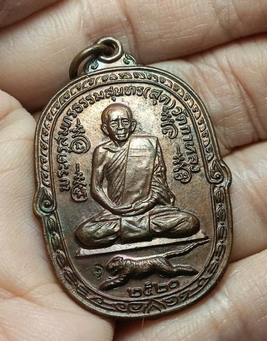 เหรียญเสือเผ่น หลวงพ่อสุด วัดกาหลง พิมพ์เสือหางตรง เนื้อทองแดง ปี2521 พระสวยผิวเดิม สภาพตามรูปเลยครับมาพร้อมบัตรการันตีพระ