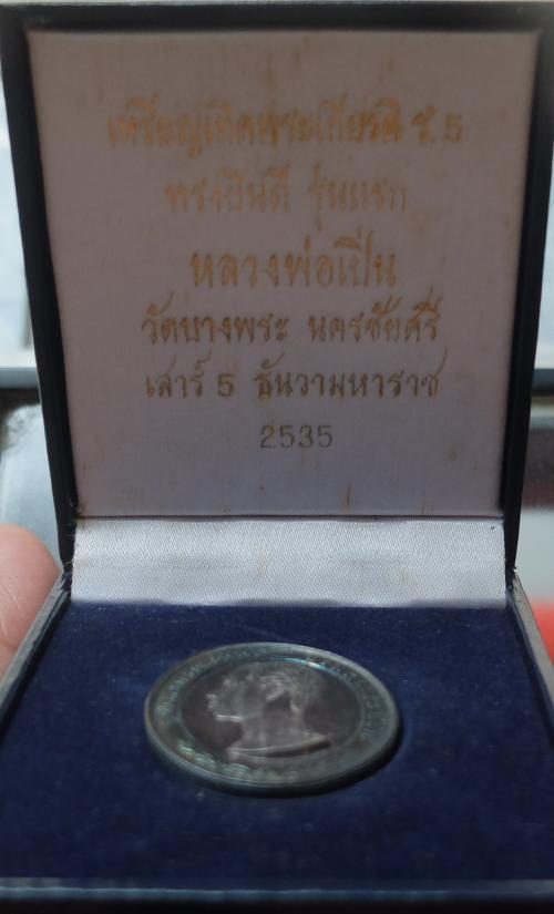 เหรียญรัชกาลที่ 5 ทรงยินดี หลวงพ่อเปิ่น วัดบางพระ เสาร์ 5 ปี 2535 เนื้อเงิน พิมพ์ใหญ่