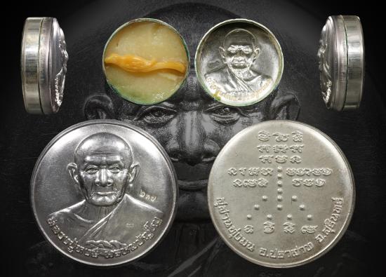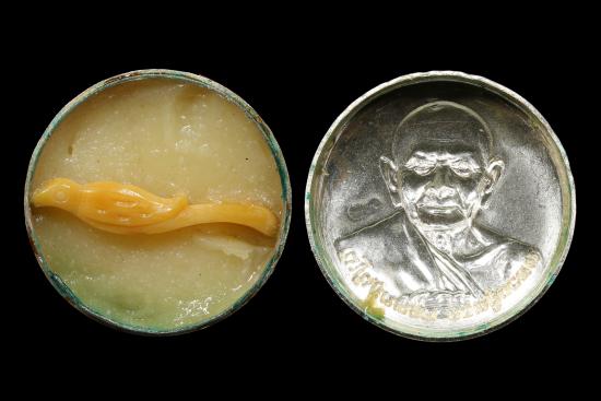 ตลับสีผึ้ง เนื้อเงิน ( สีผึ้งสาริกาลิ้นทอง ) หลวงปู่หงษ์ พรหมปัญโญ ปี 2556 ตอกโค้ด ตอกหมายเลข 237 |