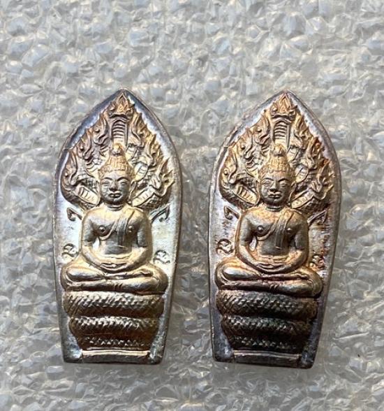 เปิดคู่....พระปรกใบมะขาม รุ่นแรก เนื้อเงิน หลังเรียบจารเต็ม หลวงพ่อทรง วัดศาลาดิน(มอญ) จ.อ่างทอง อายุ ๗ รอบ ๘๔ ปี พ.ศ.๒๕๔๙ ขนาดกระทัดรัด(สูงประมาณ ๑.๙ ซม.)ตอก 2โค๊ต สภาพฟอร์มสวยแชมป์