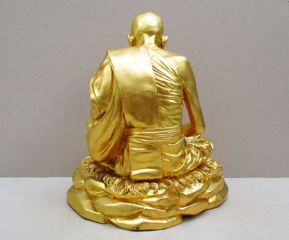 พระบูชาพระครูภัทรธรรมรัตน์ วัดโคกสูง จ.สงขลา รุ่นแรก ฉลองอาย ุ 7 รอบ 84 ปี พ.ศ.2539 หน้าตัก 9.7 นิ้ว เนื้อทองลำอู่ ปิดทอ งคำเปลวผิวแห้งหิ้ง !!
