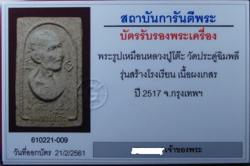 .............. องค์ที่นำลงประมูล สภาพสวย พระผิวเดิมมากๆ ตามองค์พระยังมีนวลแป้งโรยพิมพ์เดิมๆ มีเส้นเกศา2เส้นใต้ใบหูของหลวงปู่ พระหนามากเกือบ 7 มิลฯ ตัวหนังสือยันต์หลังคมชัดมาก ไม่ผ่านการแขวนใช้บูชา กดพิมพ์ได้คมชัด บางองค์ที่พบคำว่าเรียนตัวอักษร "ยน" จะกดพิมพ์ติดไม่ชัด แต่องค์ที่นำลงประมูลติดชัดเจนมาก
