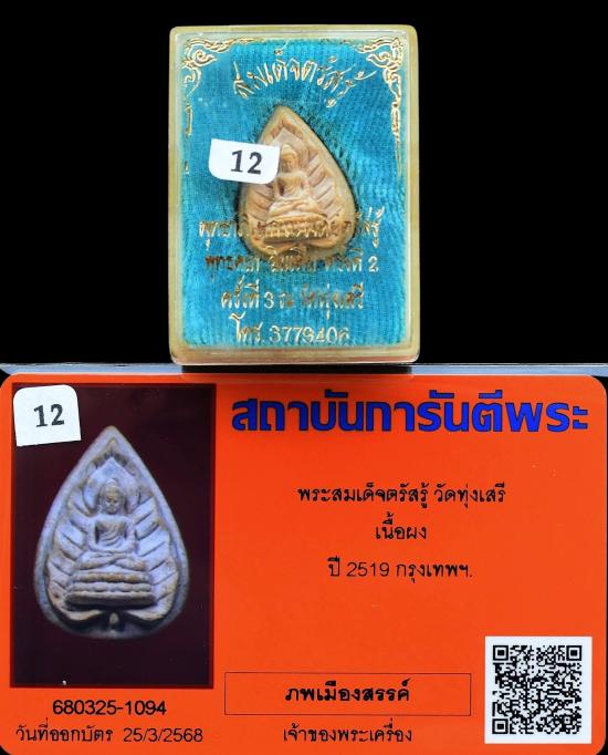 ( 12 ) พระสมเด็จตรัสรู้ วัดทุ่งเสรี เนื้อผงพุทธคุณ ปี 2519 หลวงปู่โต๊ะ , อ.ชุม ไชยคีรี และ พระเกจิรวมปลุกเสก มีกล่อง + บัตรรับรองพระแท้การันตีพระ สภาพพระตามรูปที่ลงทุกประการ
