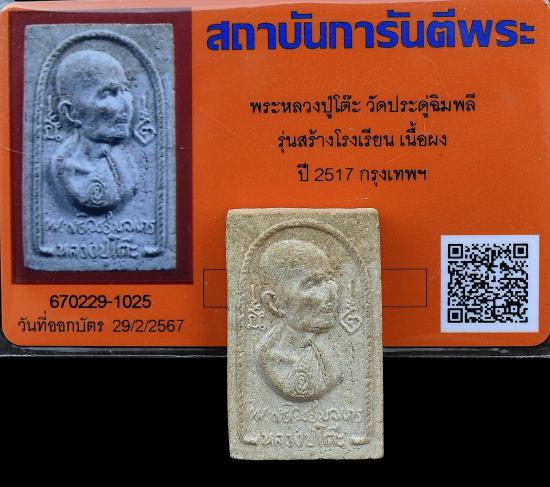 พระผงรูปเหมือนหันข้างหลังตราชั่ง รุ่นสร้างโรงเรียน เนื้อผงศักดิ์สิทธิ์ ปี 2517 หลวงปู่โต๊ะ วัดประดู่ฉิมพลี กทม. มาพร้อมบัตรรับรองพระแท้การันตีพระ