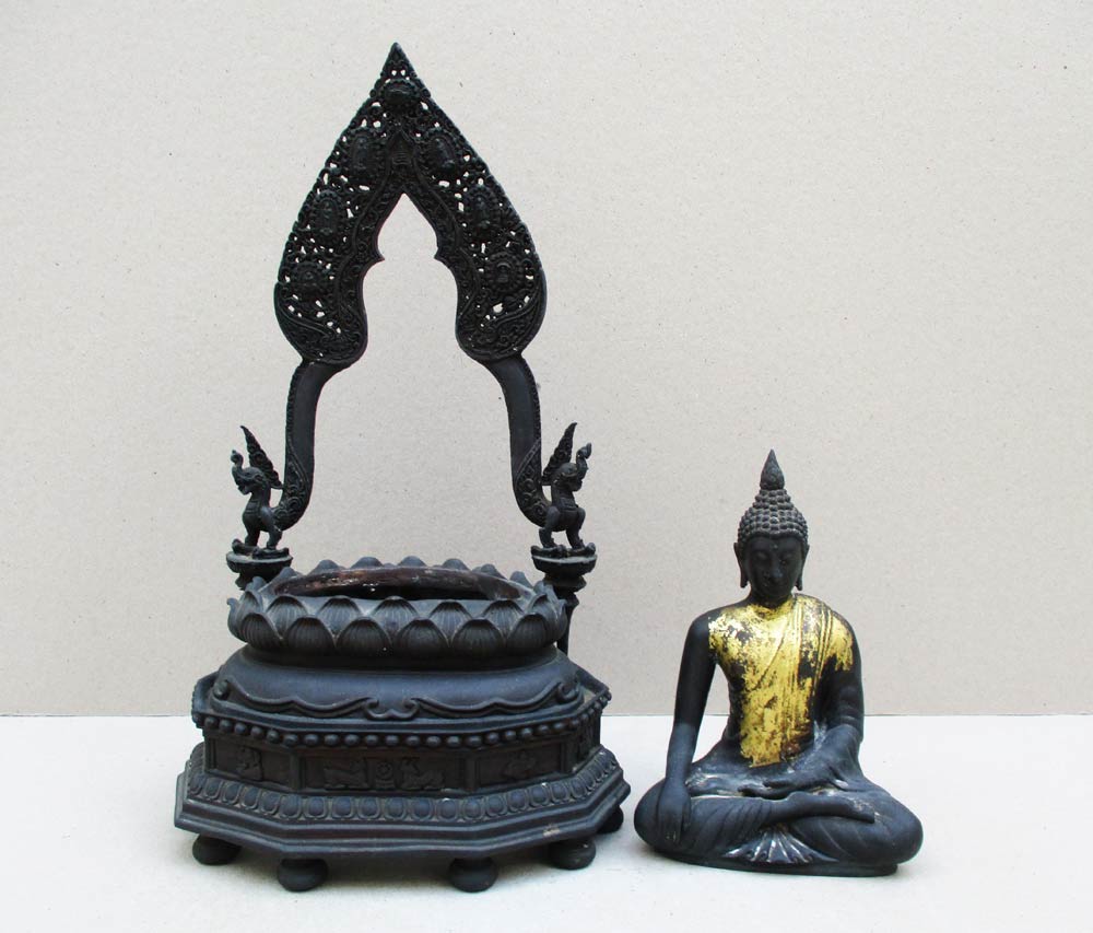 องค์พระกับฐานถอดออกได้ 2 ชิ้น เนื้อโลหะรมดำ ผิวแห้งหิ้ง !!