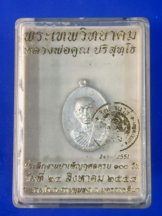 เหรียญเม็ดแตงหลวงพ่อคูณ ที่ระลึกงานบำเพ็ญกุศลครบ 100 วัน ปี 2558 เนื้อเงิน น้ำหนัก 5.25 กรัม พร้อมกล่องเดิม |