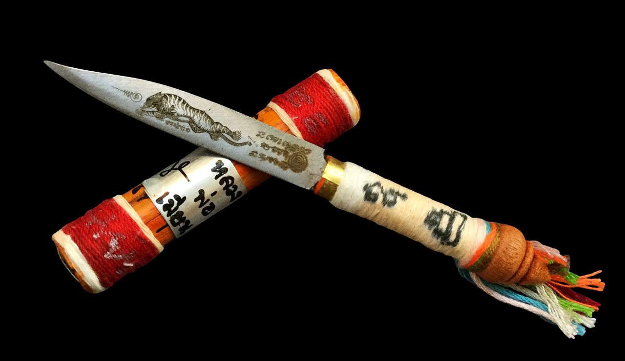 รายละเอียด +!!เคาะเดียวllดง ตลอดสาย!!+ มีดหมอหวายอาคม ขนาด 5 นิ้ว รุ่นชาติพยัคฆ์ หลวงพ่อเมียน วัดบ้านจะเนียง จ.บุรีรัมย์ จารเต็มและเลขโค้ดสวยๆตามรูป พร้อมกล่องครับ