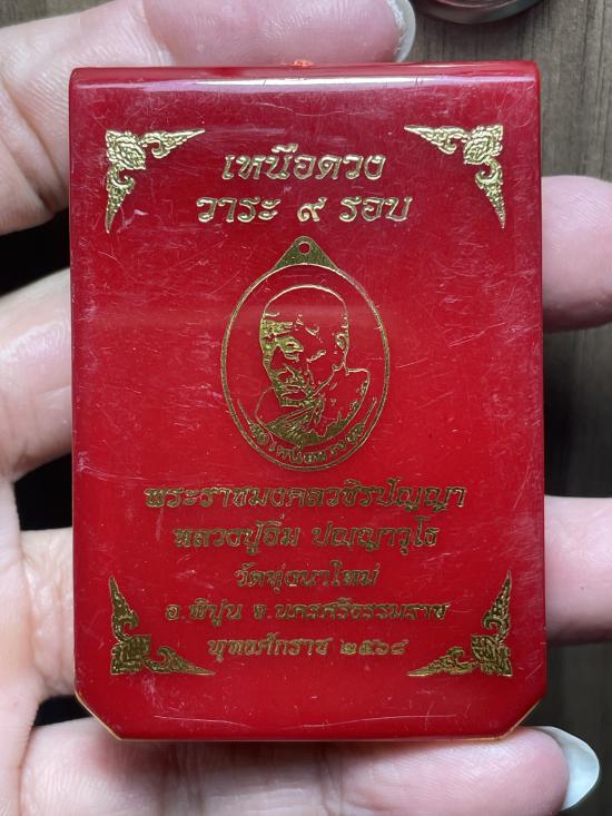 เหรียญเหนือดวง หลวงปู่อิ่ม วัดทุ่งนาใหม่ เนื้อทองแดงหน้ากากฝาบาตรลงยา สวยเดิมๆพร้อมกล่องคับ