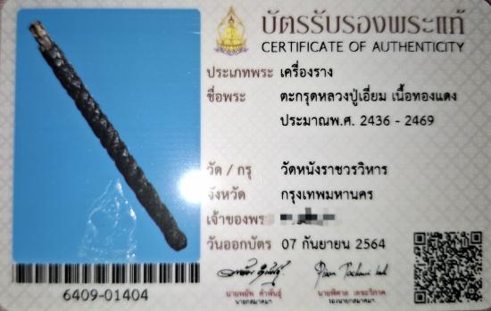 ตะกรุดหลวงปู่เอี่ยม วัดหนัง พ.ศ. 2436-2469 เนื้อทองแดง รักเดิม ๆ มาพร้อมบัตรสมาคมค่ะ