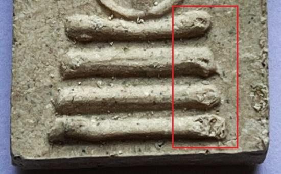 -องค์ขวา มีตำหนิกระเทาะเนื้อหลุดฐานชั้นที่3+ขอบขวา จุดที่วง ตามภาพที่1