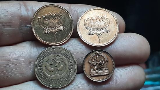 รายละเอียด เหรียญพระแม่ลักษมี หลังดอกบัว วัดแขก สีลม กทม.(2เหรียญ)+++เหรียญพระพิฆเนศนั่งคู่กับพระแม่อุมาเทวี หลังยันต์ (1เหรียญ)+++เหรียญพระพิฆเนศ หลังพระแม่อุมาเทวี พิมพ์เล็ก วัดพระศรีมหาอุมาเทวี (วัดแขกสีลม) ปี53 (1เหรียญ)รวม4เหรียญ