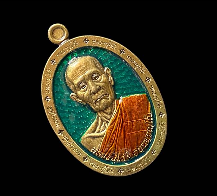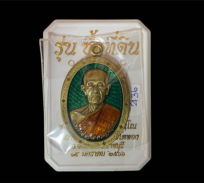 เหรียญไข่ รุ่น "ซื้อที่ดิน" หลวงปู่โต๊ะ วัดถ้ำสิงโตทอง จ ราชบุรี ปี 2566 เนื้อทองทิพย์ซาตินลงยาเขียวลงยาจีวร เลขโค๊ต # 436 กล่องเดิมครับ
