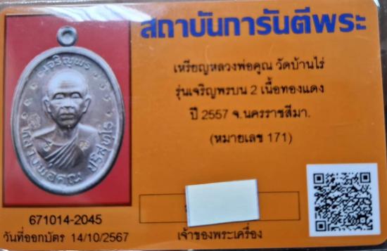 !!!เคาะเดียวแดง เหรียญหลวงพ่อคูณ เจริญพร2 พรหมเทพ เนื้อทองแดง 9 รอบไม่ตัดปีก เลข 171 พร้อมกล่องเดิมครับ |