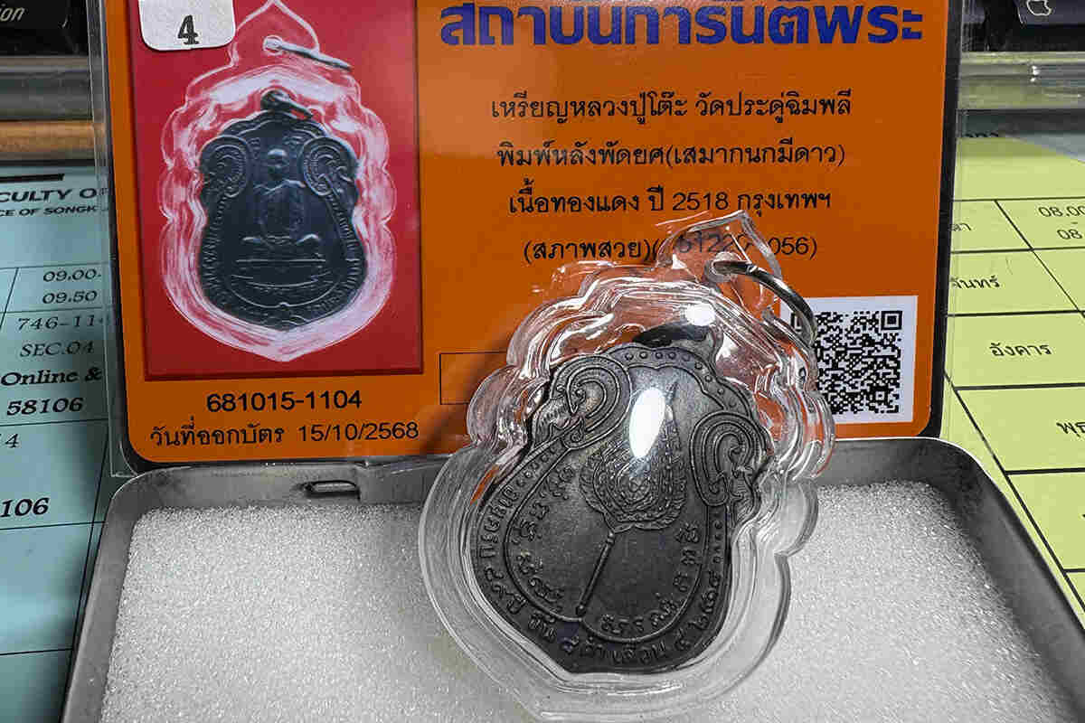 DeDEE เหรียญเสมาปู่โต๊ะ ปี ๒๕๑๘ เนื้อทองแดง บัตรสภาพสวย DeDEE