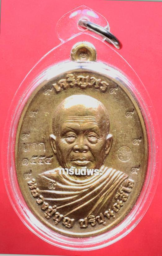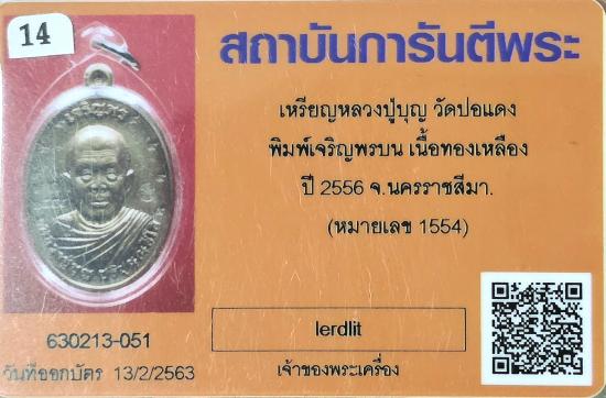 เหรียญหลวงปู่บุญ วัดปอแดง เจริญพรบน เนื้อทองเหลือง ปี2556 แจกกรรมการ สร้างน้อยหายากท่านจารมือเองจำนวนน่าจะหลักร้อย เช่าหาระวังของปลอมนะครับเหมือนของจริงมาก ต่างกันลายมือข้างหลังและโค๊ต9