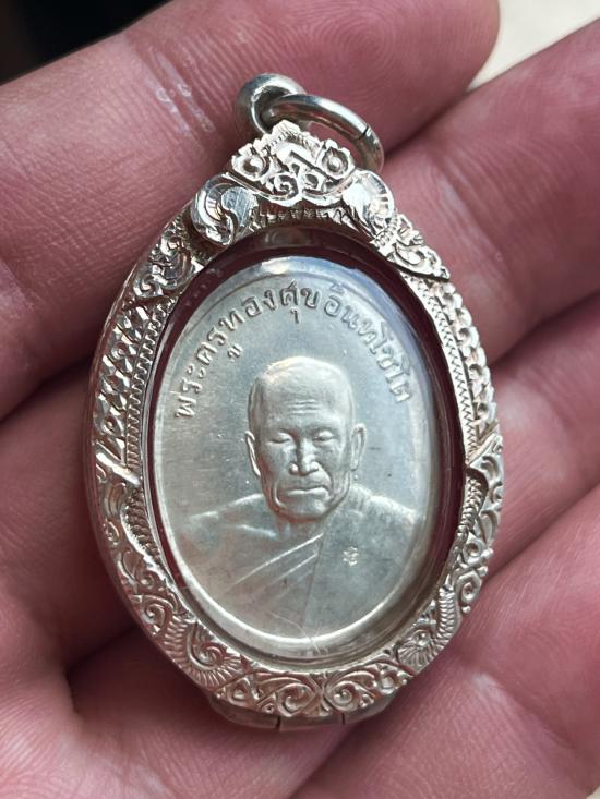 เหรียญมงคลมหาเศรษฐี เนื้อเงิน ลวงพ่อทองศุข วัดโตนดหลวง จ เพชรบุรี ปี 2561 หมายเลข 44 เลี่ยมตลับเงิน สภาพสวย