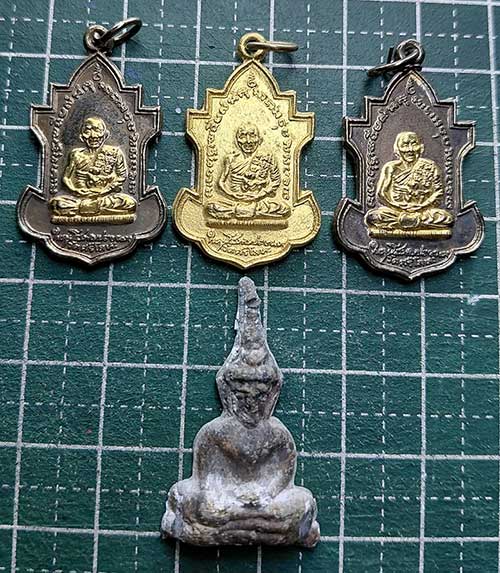 เหรียญหลวงพ่อนารถ ปี 2528 ฉลองอายุ 85 ปี 3 เหรียญ + ท่ากระดานพิมพ์เล็ก หลังวงเดือน นิยม (เคาะเดียว) |