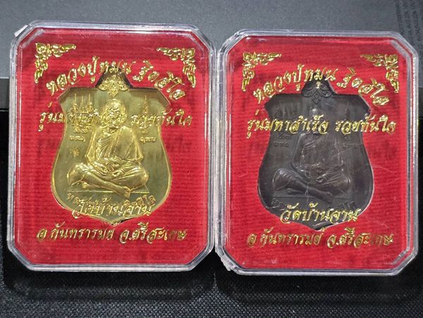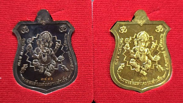 2 องค์ . สภาพสวย . เท่าไหร่เท่านั้น ... เหรียญมหาสำเร็จ หลวงปู่หมุน หลังพระพิฆเนศ เนื้อทองแดงรมดำ + เนื้อทองเหลือง วัดบ้านจาน ปี 60 + กล่องเดิม