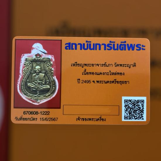 เหรียญหลวงปู่เภา ปิยะเถโร วัดพระญาติการาม กะไหล่ทอง นิยม พร้อมบัตร