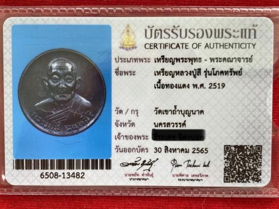 เหรียญหลวงปู่สี รุ่นโภคทรัพย์ เนื้อทองแดงปี19 สภาพสวยเดิม