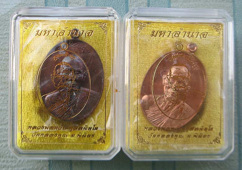 เหรียญมหาอำนาจ เนื้อทองแดงรมมันปู+ทองแดงผิวไฟ. หลวงพ่อหวั่น วัดคลองคูณ. อำเภอตะพานหิน จังหวัดพิจิตร ปีพ.ศ. 2558