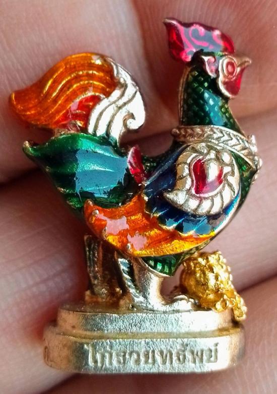 ไก่รวยทรัพย์ รุ่นแรก หลวงพ่อรวย วัดตะโก ออกที่วัดท่าช้าง จ.อ่างทอง ลงยา7สี ฝังตะกรุดเงิน หมายเลข 2333
