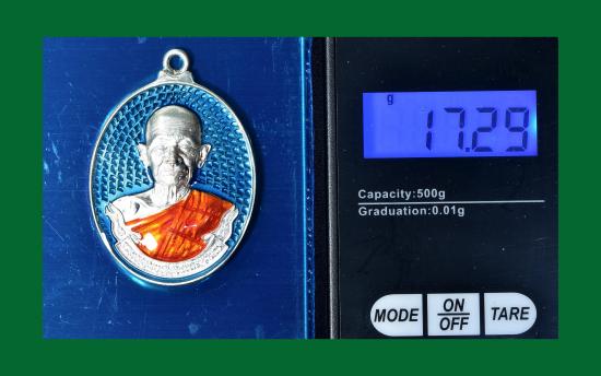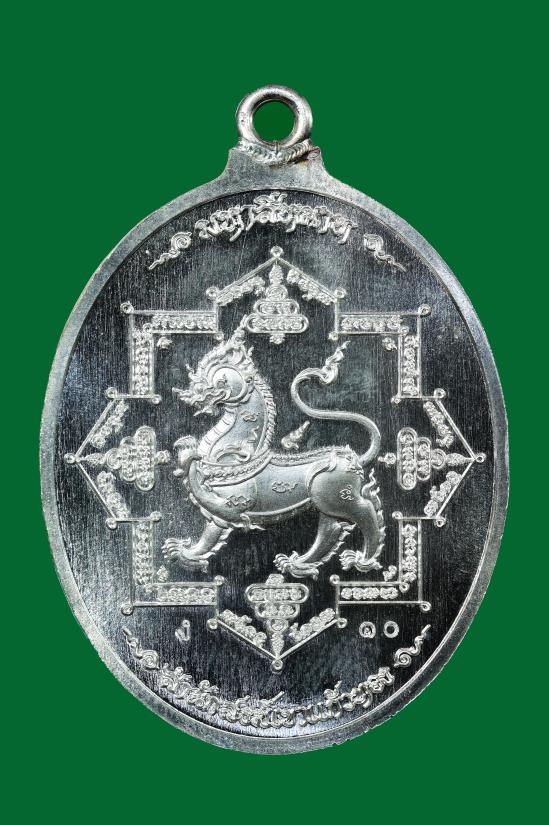 เหรียญห่วงเชื่อม "มหาสีหนาท" หลวงปู่บุญมา โชติธัมโม สำนักสงฆ์เขาแก้วทอง อ.กบินทร์บุรี จ.ปราจีนบุรี เนื้อเงิน ลงยาสีฟ้า ลงยาจีวร ตอก ง หมายเลข ๑๐ น้ำหนักเหรียญ 17.29 กรัม