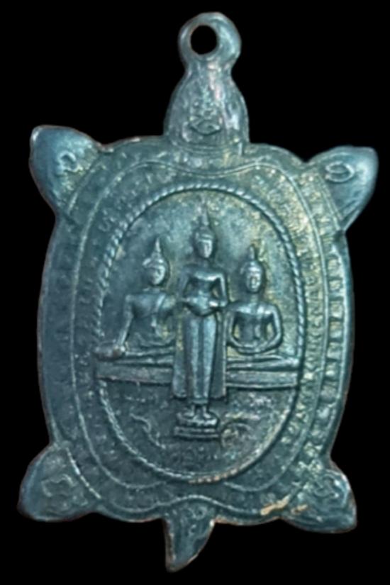 เหรียญพญาเต่าเรือน รุ่นปัจฉิมวัย(พระสามพี่น้อง) หลวงปู่หลิว วัดไร่แตงทอง (ออกวัดหนองอ้อ) จ.ราชบุรี ปี2541 เนื้อนวะ พิมพ์จิ๋ว |