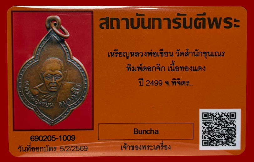 เหรียญหลวงพ่อเขียน วัดสำนักขุนเณร จ.พิจิตร ปี2499 พิมพ์ดอกจิก เนื้อทองแดง หายาก สภาพสวย พร้อมบัตรรับรองครับ.