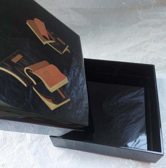 กล่องไม้เครื่องเขินญี่ปุ่น (Japanese lacquerware) ซึ่งเป็นงานศิลปะการลงรักปิดทองที่มีความประณีต ซึ่งมีชื่อเสียงในด้านความทนทานเป็นพิเศษ ขนาด10*11.5 นิ้ว หนา 2 นิ้ว เก็บอุปกรณ์พระเครื่อง