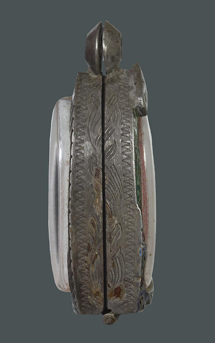 วัดใจ**ตลับใส่พระ เนื้อเงินแกะลายลงยาเก่า.....ตามสภาพครับ