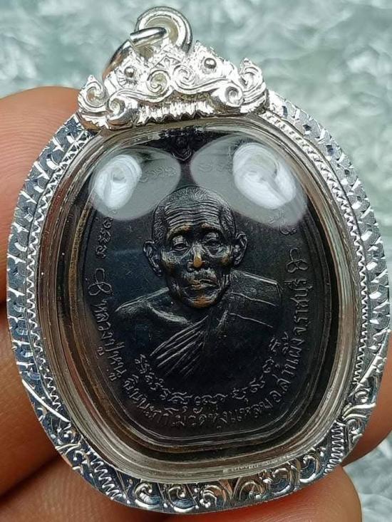 เหรียญแอปเปิ้ล ปี2528 หลวงปู่หนู วัดทุ่งแหลม จ.ราชบุรี เนื้อทองแดงรมดำ สภาพสวยสมบูรณ์ ผิวเดิมๆ พร้อมเลี่ยมเงินงานมืออย่างดี