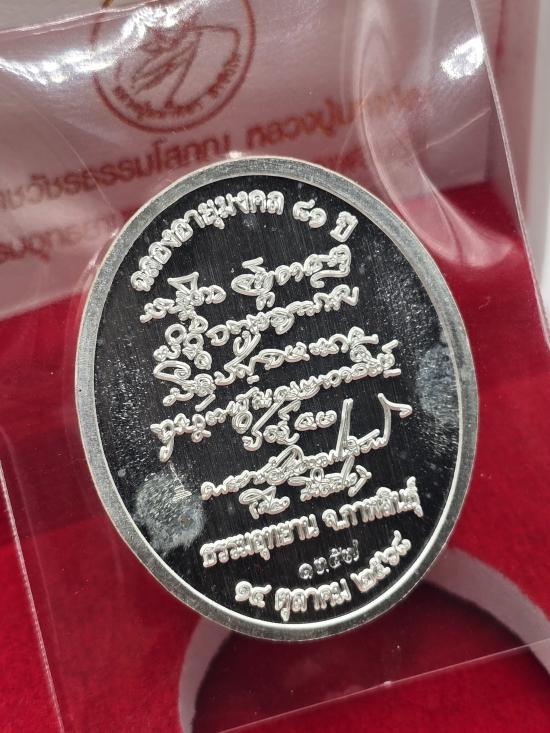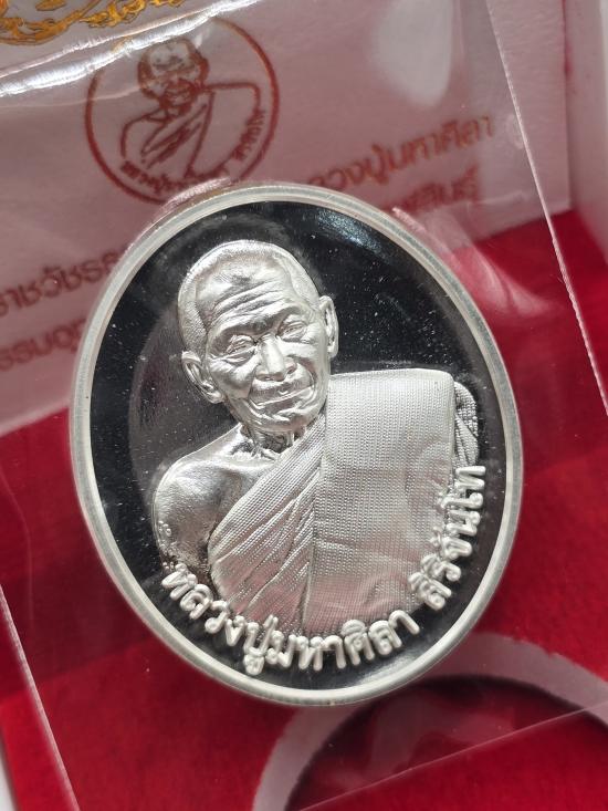 เหรียญ กลม ย้อนยุค อายุวัฒนมงคล 81ปี หลวงปู่มหาศิลา หลวงปู่ศิลา สิริจันโท ธรรมอุทยาน วัดพระธาตุหมื่นหิน จ.กาฬสินธุ์ เนื้อเงิน ผิวกระจก เลข ๑๓๕๗ มีกล่องเดิม ด้านหลังโรยผงตะไบมวลสารรุ่นแรก |