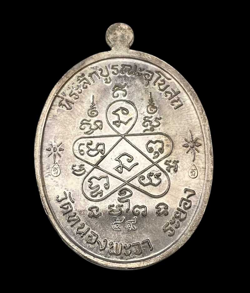 เหรียญเจริญพรบน หลวงปู่แก้ว เกสาโร วัดหนองพะวา เนื้อเงิน เลขสวย *59*