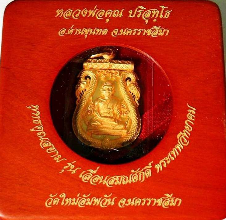 รายละเอียด เหรียญเสมาฉลุหลวงพ่อคูณ วัดบ้านไร่ รุ่นพุทธคูณสยาม เนื้อทองคำ สวยๆ ปี2554 ตอกหมายเลข ๑๔ พร้อมกล่องเดิม