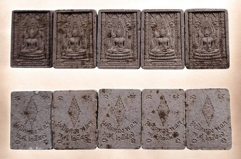 ( 5 องค์ ) พระผงพุทธคุณ พระพุทธชินราชหลังยันต์อกเลา รุ่น ปิดทอง ปี 2547 สวยเดิมๆครับ 2 |