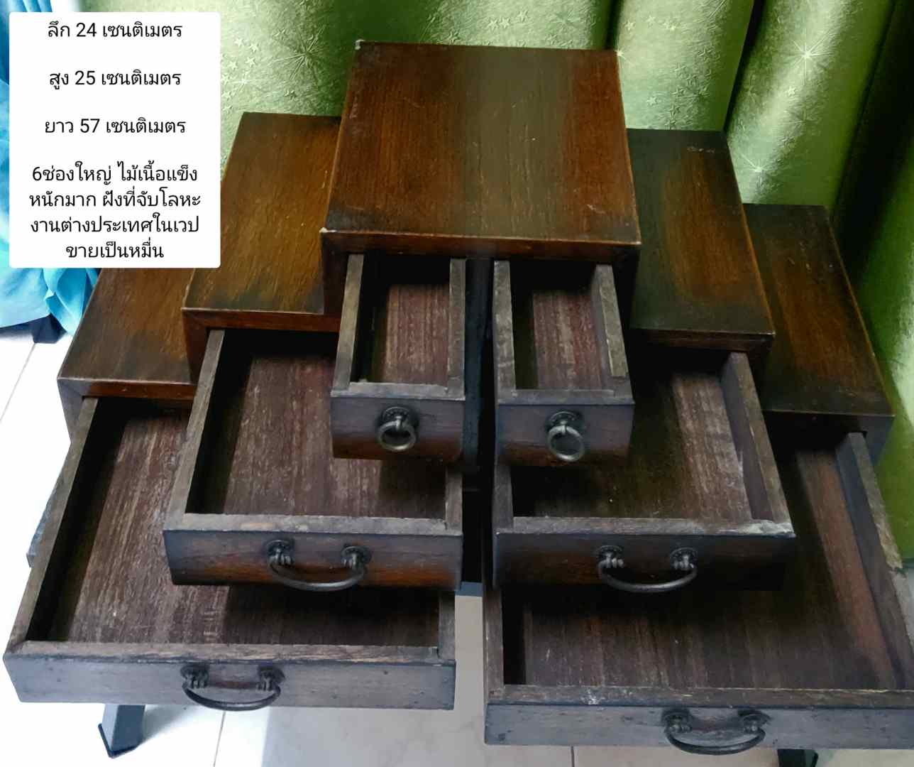 วัดใจ เคาะเดียว ลิ้นชักไม้ งานเมืองนอก ญี่ปุ่นมือสอง ไม้แท้ ไม้เนื้อแข็งหนักมาก ลิ้นชัก6ชั้น ที่จับโลหะ ลิ้นชักใหญ่ขนาดตามรูป งานนอก ไม้เนื้อแข็งหนักมาก