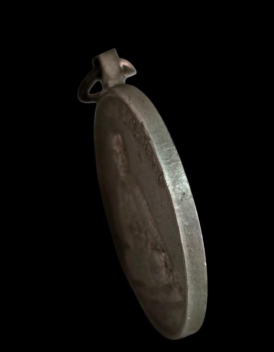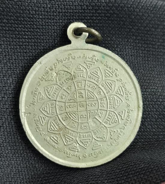 วัดใจเหรียญรุ่นปลอดภัย ปี 2540 หลวงปู่ครูบาอิน วัดฟ้าหลั่ง หลังยันต์มงกุฎพระพุทธเจ้า เนื้ออัลปาก้าสวยๆ
