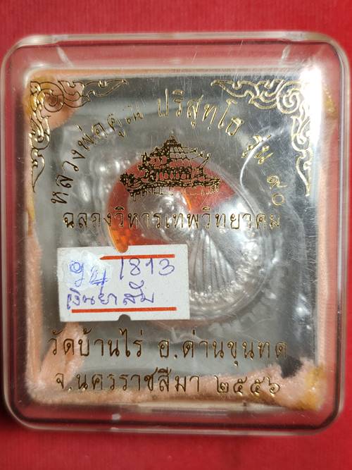 เหรียญหลวงพ่อคูณ ปริสุทโธ รุ่น ฉลองวิหารเทพ ออกวัดบ้านไร่ ปี 56 เนื้อ เงินลงยาสีฟส้ม หมายเลข 1813 เลี่ยมพร้อมใช้ เคาะเดียวแดง |