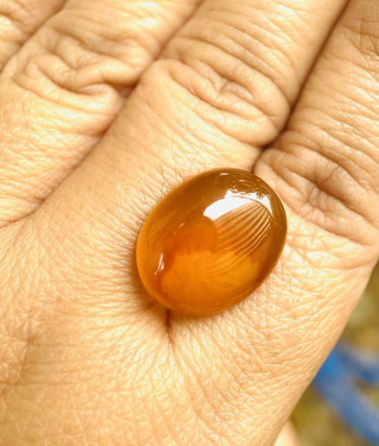 พลอยโมราอาเกตเหลือง เจียระไนหลังเบี้ย 16.10 กะรัต |